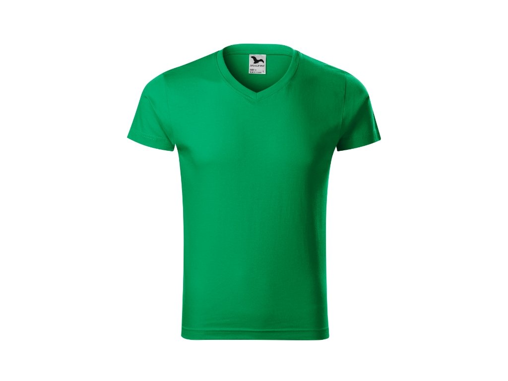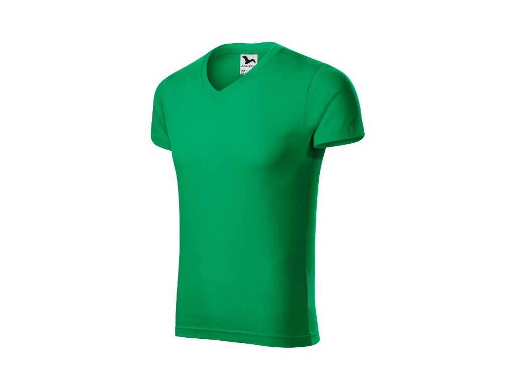 Pánské tričko Slim Fit V-neck středně zelená